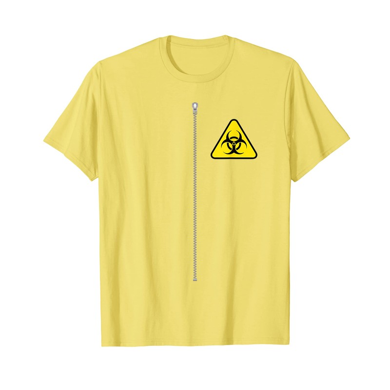 - Biohazard Hazmat Easy Lazy DIY Halloween Costume has a zipper and biohazard symbol in front and big biohazard symbol in the back. This novelty item can also be worn year round.