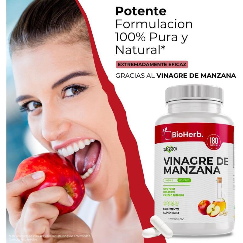 BioHerb. Vinagre de Manzana “Cultivo Madre” Concentrado 100% Puro (180 Capsulas de 500mg) - [Extremadamente Eficaz] - | Alta Concentracion | Rapida Absorcion | Calidad Suprema | Suministro Para 90 Dias | - Organic Apple Cider - BioHerb