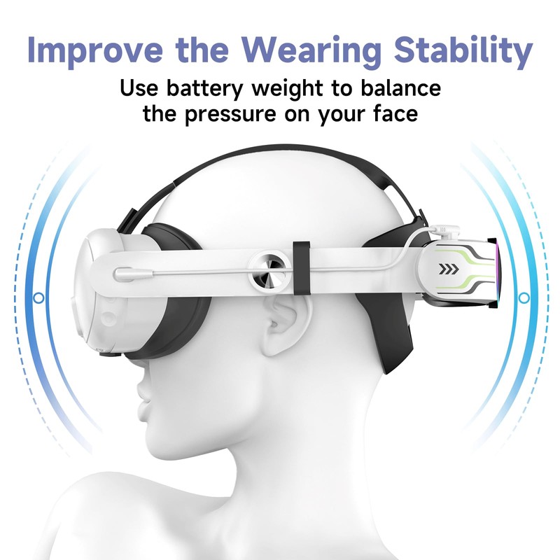 - Relaxed and Comfortable: Our battery pack for meta quest 3 has a 52 adjustable hinge, making it easy to take off and put on. It also comes with a TPR high-quality material head pad that enhances breathability and water absorption, so you can enjoy an immersive gaming experience in comfort, 360 rotatable knob for players of all head sizes.