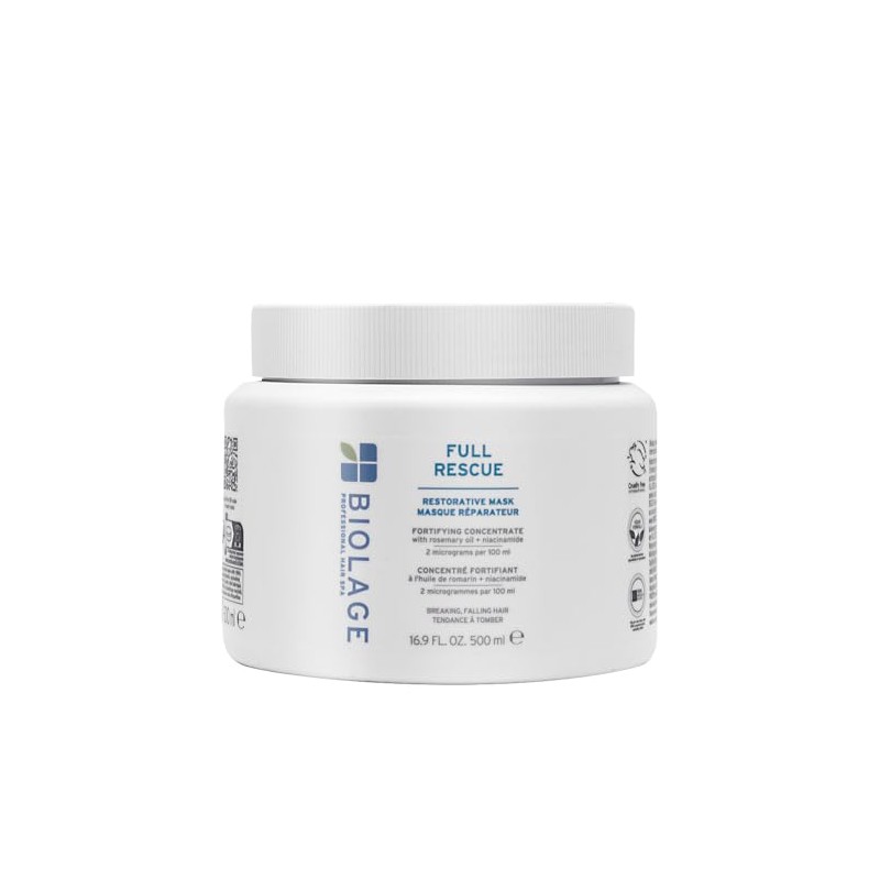 Biolage Restrukturierende Maske für feines Haar, geeignet für alle Haartypen, angereichert mit Rosmarinöl, Niacinamid und Vitamin B, Full Rescue, 500 ml
