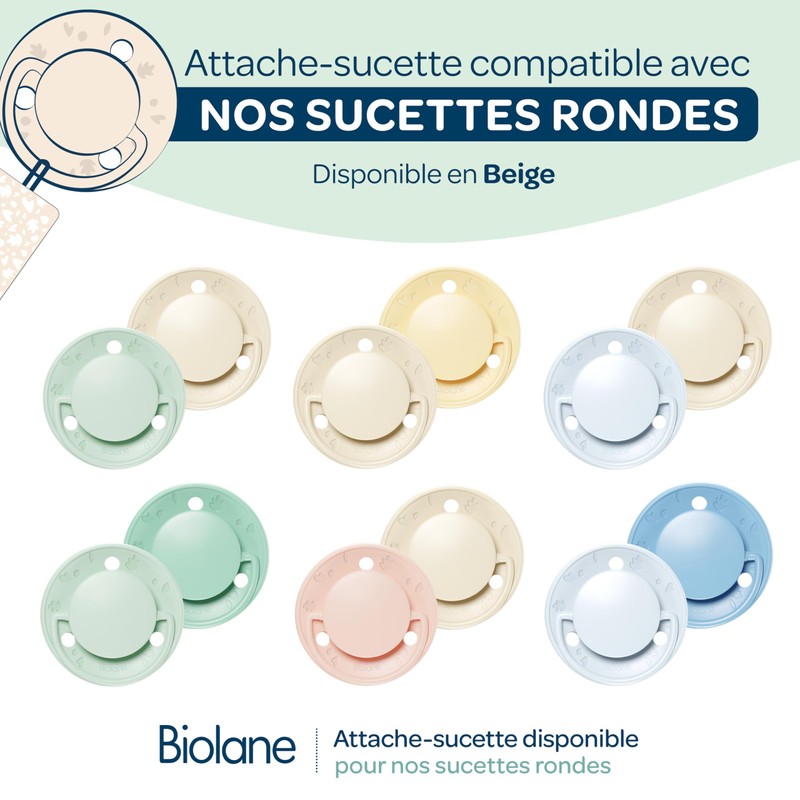 - Oral Development Consideration: Biolane round pacifiers have an extra thin base (-25%* compared to a standard pacifier) that allows good lip closure, limits the risk of tooth damage and ensures proper mouth development for your baby.
