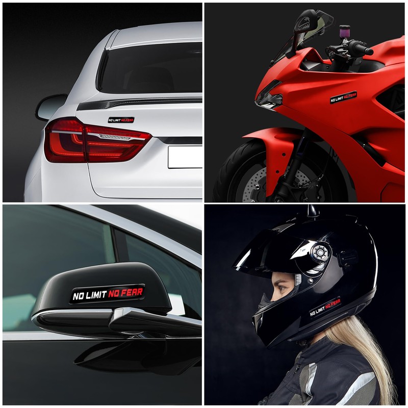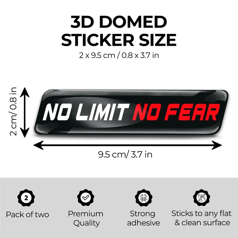 Biomar Labs 2 x 3D Gel Silikon Aufkleber Stoßstange Aufkleber Abziehbilder Emblem Tuning für Auto Motorrad Helm Fahrrad Schwarz Rot Weiß No Limit No Fear KS 124