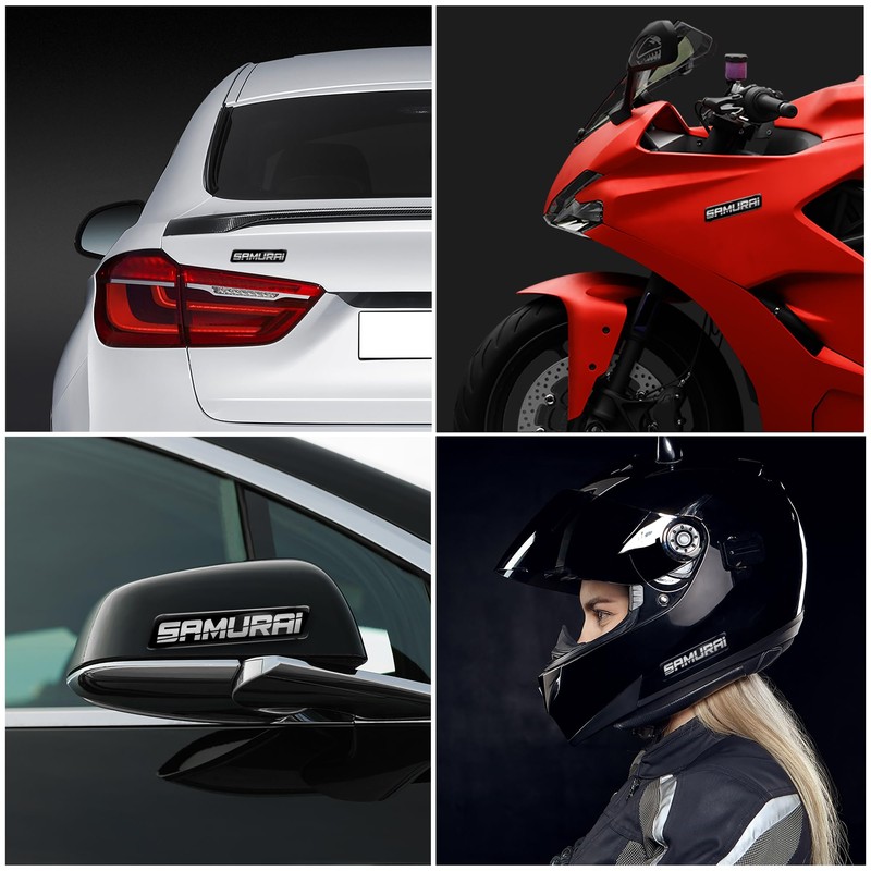 Biomar Labs 2 x 3D Gel Silikon Aufkleber Stoßstange Aufkleber Abziehbilder Emblem Tuning für Auto Motorrad Helm Fahrrad Schwarz Silber Samurai KS 132