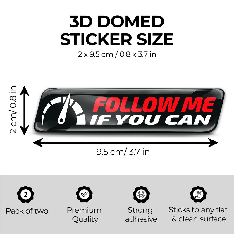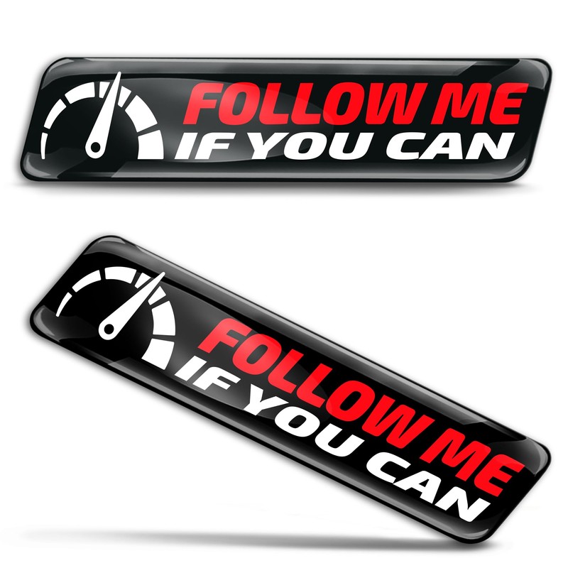 Biomar Labs 2 x 3D Gel Silikon Lustig Aufkleber Stoßstange Aufkleber Abziehbilder Emblem Tuning für Auto Motorrad Helm Fahrrad Follow Me If You Can Schwarz Rot Weiß KS 131