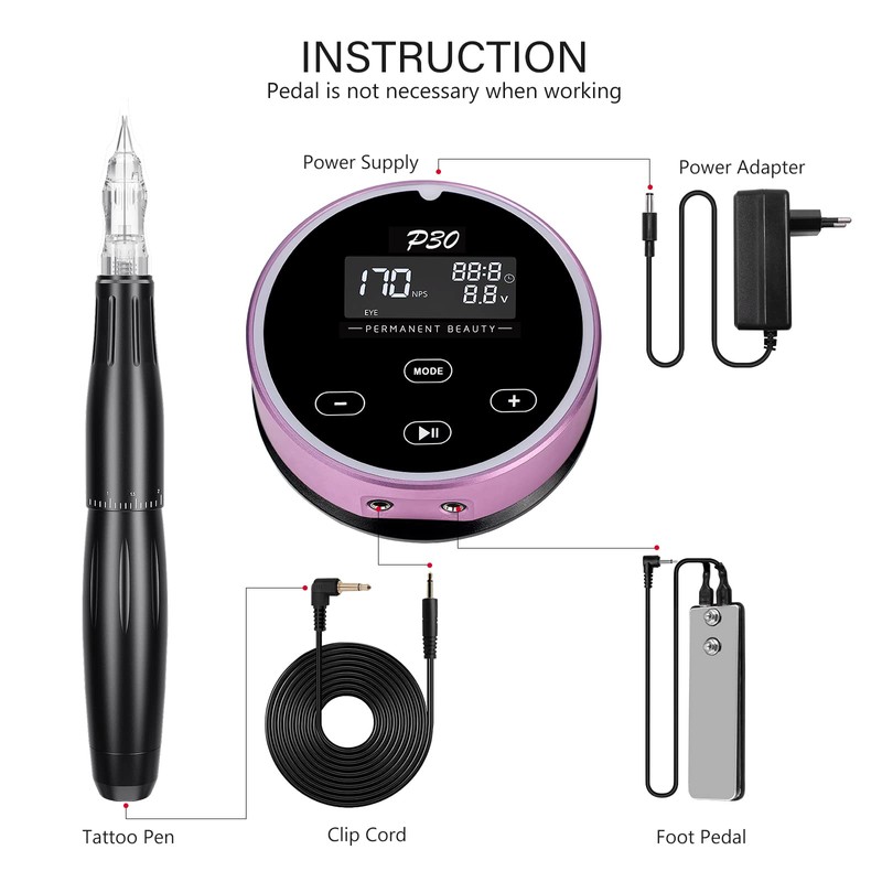 • Biomaser Update permanent make-up machine set, mini P30 power supply, strong powerful, can be used for eyebrows, eyeliner, lips and microblading, microshading, MTS.