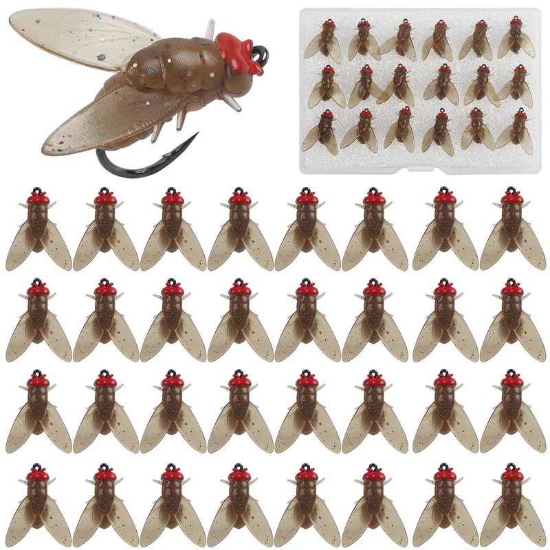 Bionic Fly Fishing Bait,18pcs/36pcs Trout Jig Swimbait Fly Hook Soft Bait Dry Flies Fly Fishing Lures Assortment Kit Attractant Fishing Gear Artificial Fishing Lure Panfish Lure Set (Browm-36PCS)