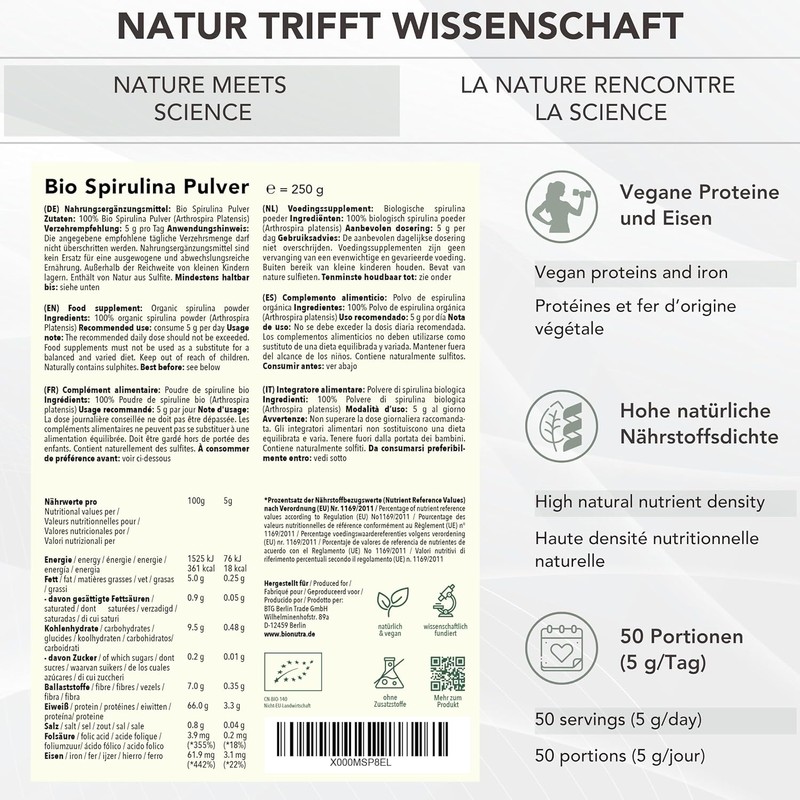 • BIONUTRA Nature meets science: Our team of former researchers from the Berlin Charité and nutritionists sees many answers to modern challenges in nature. With purely plant-based, organic superfoods and dietary supplements, we want to make healthy diet and holistic health accessible to many.