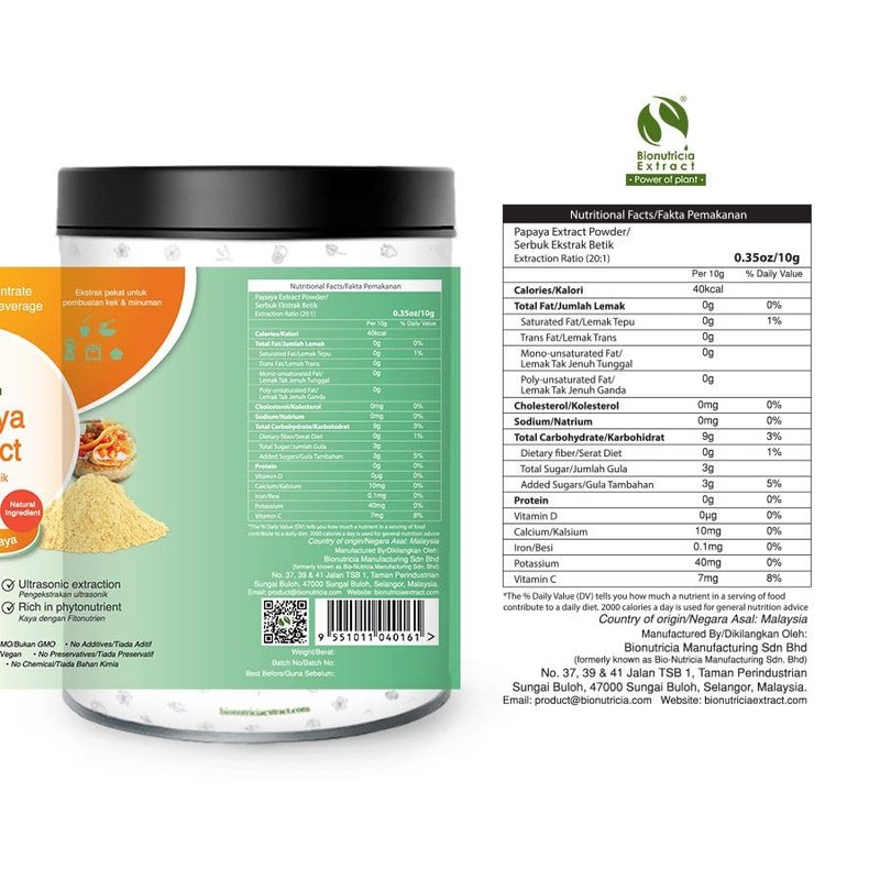 • 20:1 Concentrated Papaya Extract:Not just papaya powder! Made from 20kg of real Carica papaya fruit to deliver maximum natural flavor and nutrients in a smaller dose. A little goes a long way!