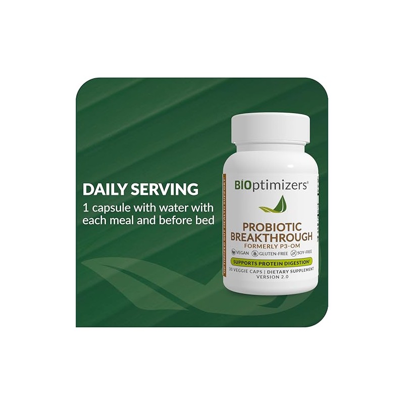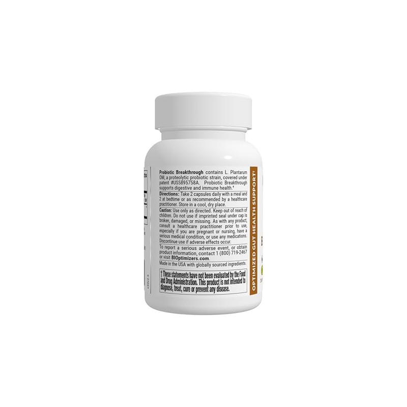 BiOptimizers BIOptimizers Probiotic Breakthrough, Proteolytic Prebiotics & Probiotics Supplement C Lactobacillus Plantarum OM for Immune, Bloating & Gut Relief Support, 30 Vegan Capsules