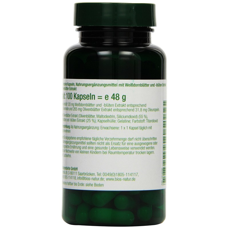 - Nahrungsergänzungsmittel mit Weißdornblätter und -blüten Extrakt und Olivenblätter Extrakt.