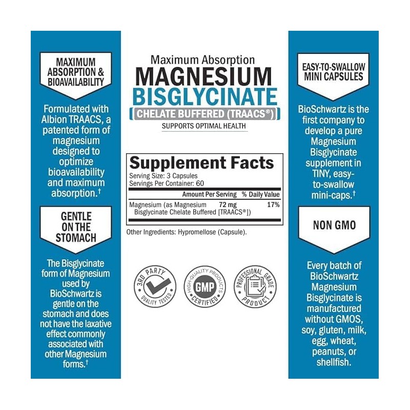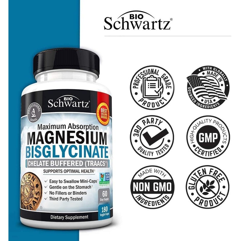 - High Bioavailability: BioSchwartz Maximum Absorption Magnesium Bisglycinate capsules are formulated with Albion TRAACS, a patented form of bioavailable magnesium for maximum absorption
