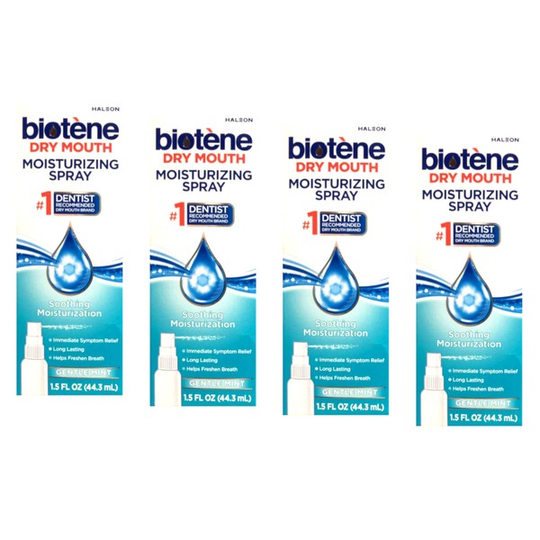 Biotene Moisturizing Dry Mouth Spray, Moisturizing Spray for Dry Mouth and Bad Breath, Gentle Mint - 1.5 fl oz (Pack of 4)