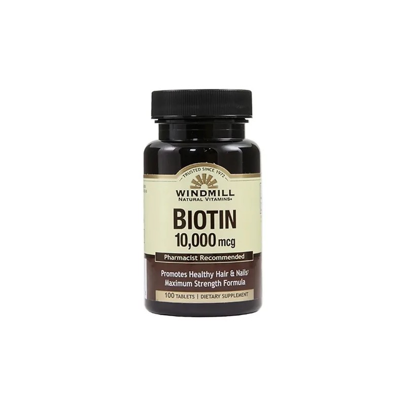 Windmill™ Biotin formula - 100 tablets ofrece 10.000 mcg de biotina por comprimido.