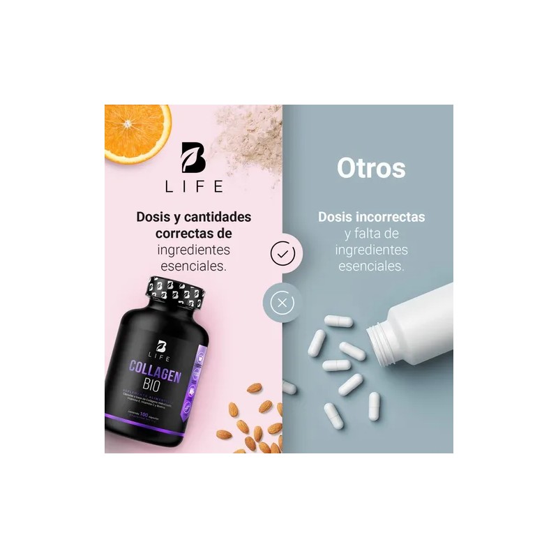 Disfruta la formulación de Collagen Bio B Life. Cada cápsula de 500 mg está diseñada a base de una máxima concentración de Colágeno Hidrolizado, Biotina y Vitaminas C y E, componentes ideales para el bienestar de tu piel, cabello y uñas. Contiene 100 cápsulas.