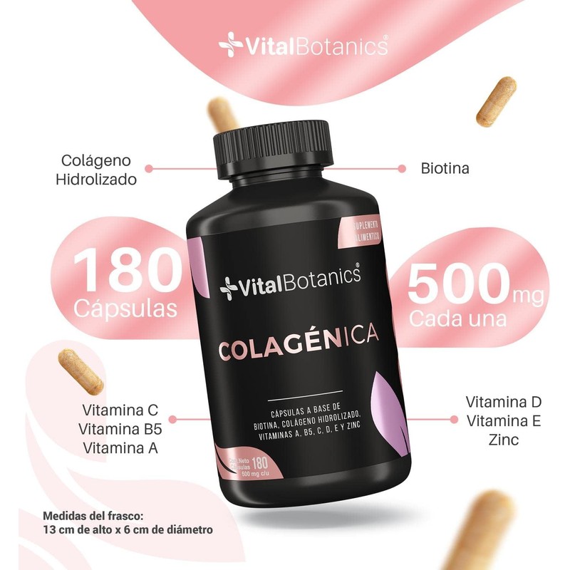 - Ingredientes | Biotina, Colágeno, Zinc y Vitaminas A, B5, C, D y E. 180 capsulas de 500mg (6 meses). Suplemento con Vitaminas para Mujer. Hydrolyzed Collagen + Biotin.