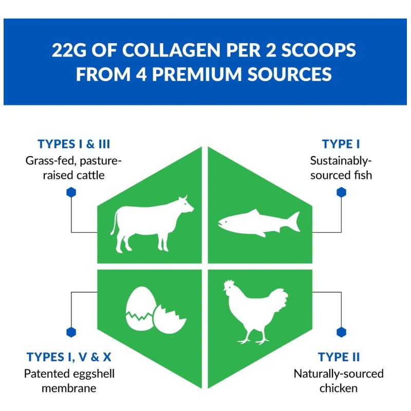 - Natural y honesto. Colágeno de 4 fuentes premium: res alimentada con pasto, pescado sostenible, membrana de cáscara de huevo y pollo. Sin OMG, gluten, lácteos, hormonas, edulcorantes o colorantes. Compatible con paleo y keto.