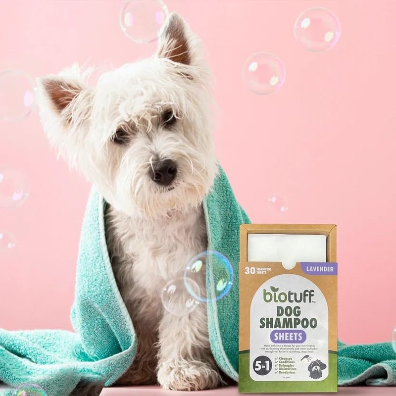 Biotuff Dog Shampoo Sheets - Water Activated Wash Sheets for Dogs - Gentle & Convenient Cleaning - Travel Friendly, Lightweight & Easy to Use - Ideal for All Breeds | 30 Sheets