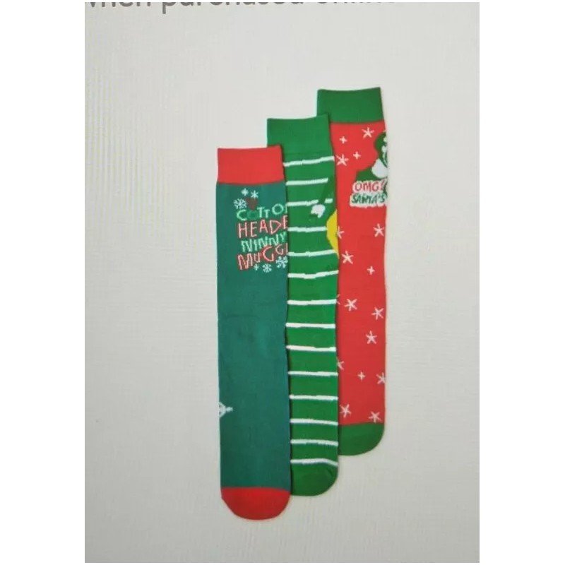 Up for auction ELF Crew Socks Men's Size 8-12 , 3 Pack Christmas Holiday Buddy Will Ferrell NEW. We ship soon you buy it. Thank you for looking our auction .