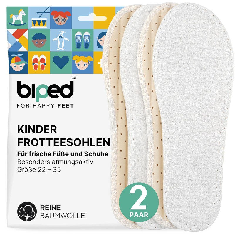 biped 2 Pairs of Children's Barefoot Soles, Terry Cloth Insoles Made of 100% Cotton and Soft Latex Cushioning, Shoe Insoles Against Foot Odour and Bacteria, z2789, White