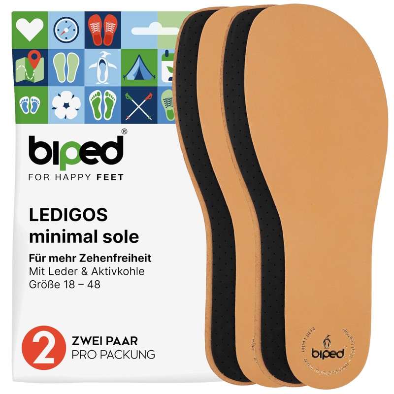 biped minimal sole LEDIGOS - 2 Pairs of Insoles for Minimal and Barefoot Shoes - Premium Leather Insoles with Activated Carbon - Shoe Insoles for Adults and Children (45)