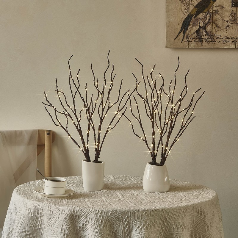- 【STURDY & BENDABLE】: The decorative led branch lights features with bendable twigs for an easy shaping. Sturdy enough for hang different ornaments for all occasions or festive decor like spring easter, fall thanksgiving and winter christmas
