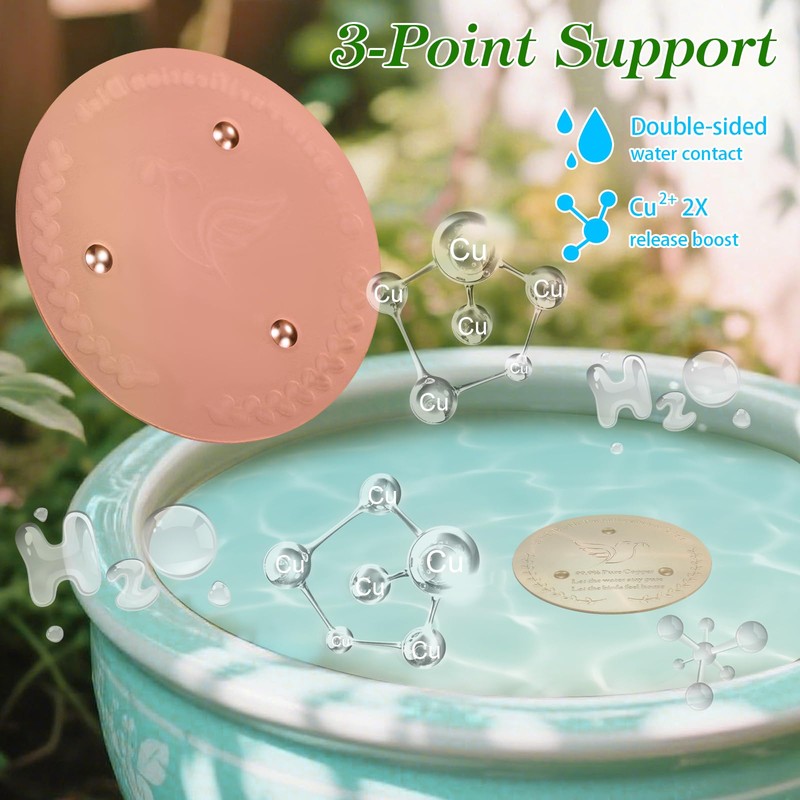 Bird Bath Copper Disk, Sturdy 1mm 99.9% Pure Copper Disk, Triple-Point Support Ensures Clean Water Year-Round, Fits Most Outdoor Birdbath Bowls (1)