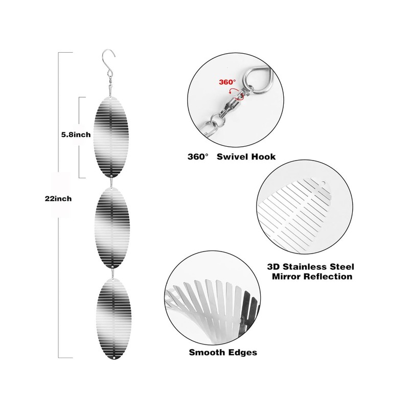 - HARLOW WIND SPINNER:Our bird reflector rotates in the gentle breeze, scaring away birds with shiny reflective panels and providing excellent light and shadow effects. It is a great yard decoration that can be used to protect rice and vegetables in farmland, hang on fruit trees or vines, or decorate backyard, walls, balconies, windows, gardens, orchards, yard lawns, and ponds