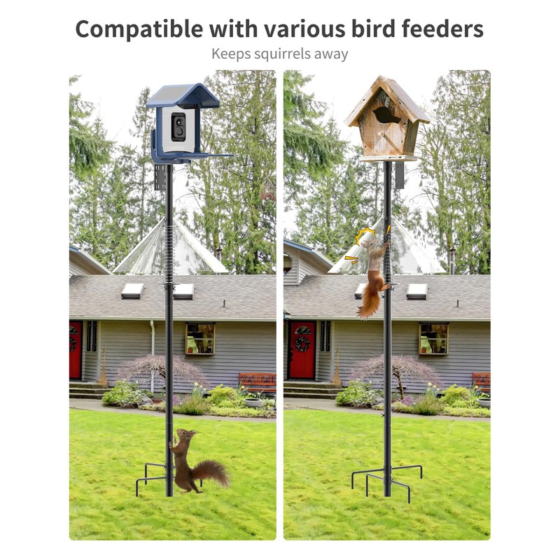 - 【Versatile Outdoor Use, Hang Multiple Items】Perfect for gardens, lawns, backyards, this birdhouse pole offers versatility for all your outdoor needs.You can hang bird feeder cameras, hummingbird feeders, bird houses and suet cage bird feeders outside. Whether decorating your space or creating a haven for birds, this pole stand offers flexibility and function for various outdoor settings.