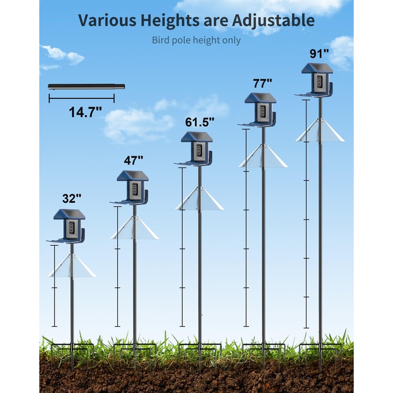 - 【Easy Installation】 This 104 inch bird feeding station includes 6.5-inch 5-prong bases, 7 connecting poles, an L-shaped plate, and a squirrel baffle. The slip-in connection makes assembly as easy as stacking blocks, while the wing nut design enables tool-free, adjust the baffle 8-10" above ground to stop squirrels, one-person setup in about 30 mins. This user-friendly design ensures everyone from young enthusiasts to seniors can assemble effortlessly.