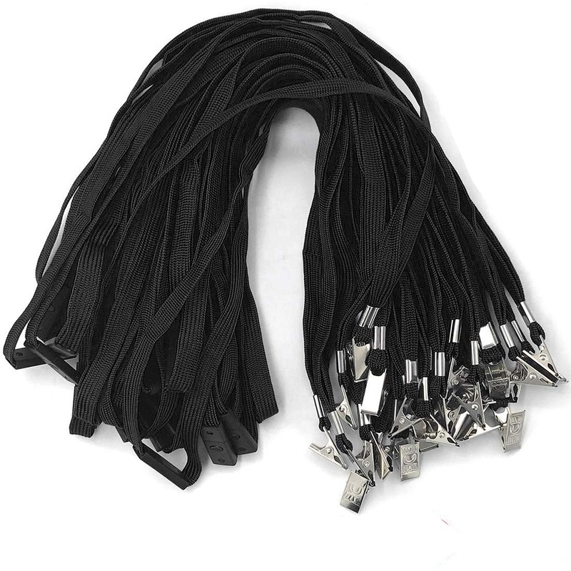 - Bulk Black Breakaway lanyard Bulldog Clip width: 3/8" (Shoe String Style)