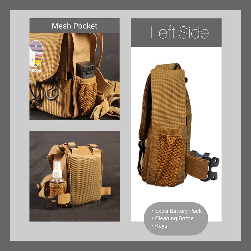 • Side open top pocket perfect for small lens caps, wipes and accessories