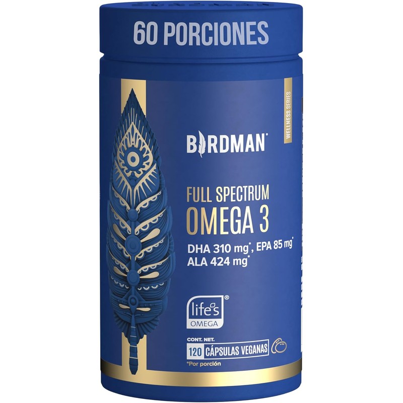 Birdman Full Spectrum Omega 3 a base de Algas y Aceite de Linaza | Fórmula 100% Vegetal y Sostenible | Libre de Contaminantes y Aditivos | Suplemento Alimenticio | 60 Porciones | 120 Cápsulas