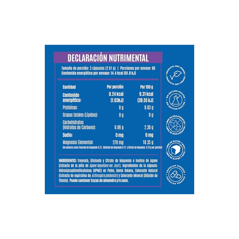 - Acerca de este artículo FÓRMULA LIMPIA Y NATURAL: Mag Trifecta combina Citrato, Glicinato y Treonato de Magnesio en cápsulas veganas con 270 mg por porción. Su fórmula integral sin aditivos ocultos está diseñada para ofrecer múltiples beneficios y apoyar la alimentación. CÁPSULAS VEGANAS DE ALTA CALIDAD: Cápsulas con esencia refrescante, fácil de consumir y diseñado para integrarse a tu rutina diaria. Libre de aditivos y libre de contaminantes. SUPLEMENTO PLANT