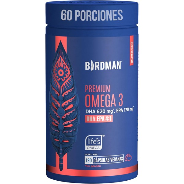 Birdman Premium Omega 3 a base de Algas (Ratio DHA:EPA 4:1) | Fórmula 100% Vegetal | Libre de Contaminantes y Aditivos | Cápsula Vegana | Suplemento Alimenticio | 60 Porciones | 120 Cápsulas