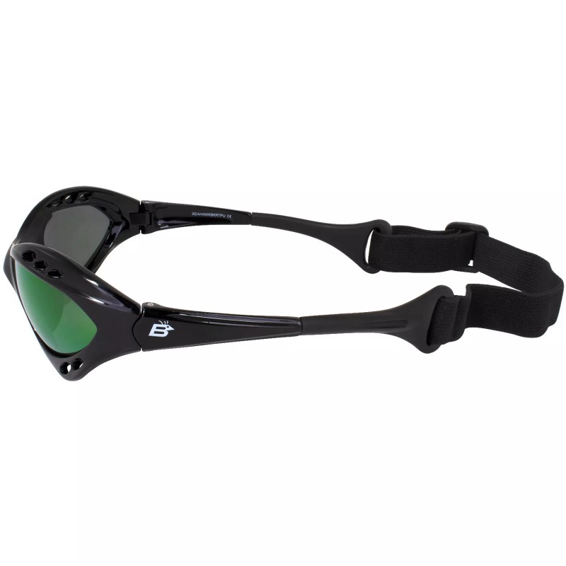 The Seahawk is designed for the adventure enthusiast, no matter what your outdoor activity of choice is. They are available in black frames with ReflecTech red, purple & green mirror lenses. The Seahawk frame is constructed of a technologically advanced TPX floating material that has the benefit of being extremely light and buoyant. Don't worry about these sunglasses falling in the water, they float! Additionally, the adjustable elastic strap will keep them securely and comfortably on your face, ensuring that you will probably never find out if they float! The TAC polarized lenses are high quality, 1.1 mm in thickness, and are shatter resistant. The polarization reduces the blinding glares from the sun so you can enjoy the road or the water unencumbered by the suns debilitating reflections. These sunglasses are equipped with a soft-to-touch form-fitting vented EVA foam across the brow, providing extra comfort and reducing the harsh effects of wind on your face. For extra comfort, each pair offers soft rubber ear and nose pads for extended outdoor wear. Every pair of Seahawk sunglasses comes with a soft microfiber pouch for safe cleaning and storage. Whether you’re cruising around the lake, settling into your favorite fishing spot, or just enjoying the sun, Seahawk Polarized Sunglasses is the eyewear that will enhance your outdoor experience.