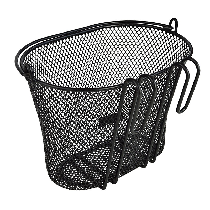 Finely woven plastic coated basket, easy to mount, with swing up handle. ----------------This basket is manufactured by bikeandgo inc------------------- --measurement: (L x W x H) 10.5" x 7" x 6.5" ,weight: 15 ounces --------Great for Shopping and carrying stuff----weight: 15 ounces.THE DISTANCE BETWEEN THE HOOKS IS 3 ⅛ INCHES OR 8CM
