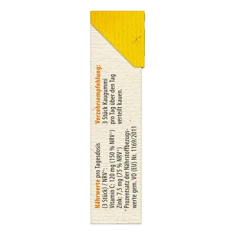Inhaltsstoffe / Zutaten1?ungsmittel: Xylit aus Birken- und Buchenrinde (69%), Kaumasse {(19%) Saft aus dem Sapotillbaum, Candelillawachs, S?uerungsmittel: Citronens?ure}, nat1rliches Aroma, Feuchthaltemittel: Glycerin, Zinkoxid, Verdickungsmittel: Gummi Arabicum, Zitronen?l, 1berzugsmittel: Carnaubawachs.