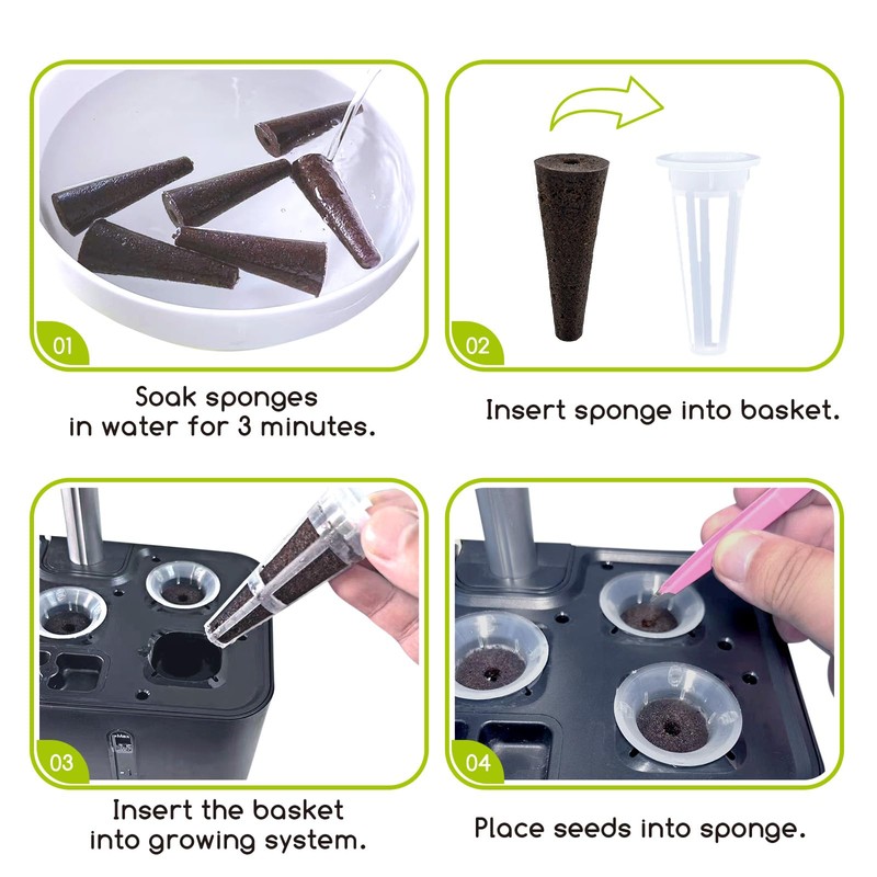 - EASY TO USE & TRANSPLANT: This 50 pack grow sponge refills for indoor garden hydroponics comes with 50 sponges and 1 tweezer(Bonus). Soak the sponges in water for 3 mins before use. Then insert the sponge into basket and basket into growing systems. Use the tweezer included to place the seeds into the sponge openings. NOTE: Seeds are not included. These replacements grow sponges are easy to transplant into soil or pod to further extend growing scenarios.