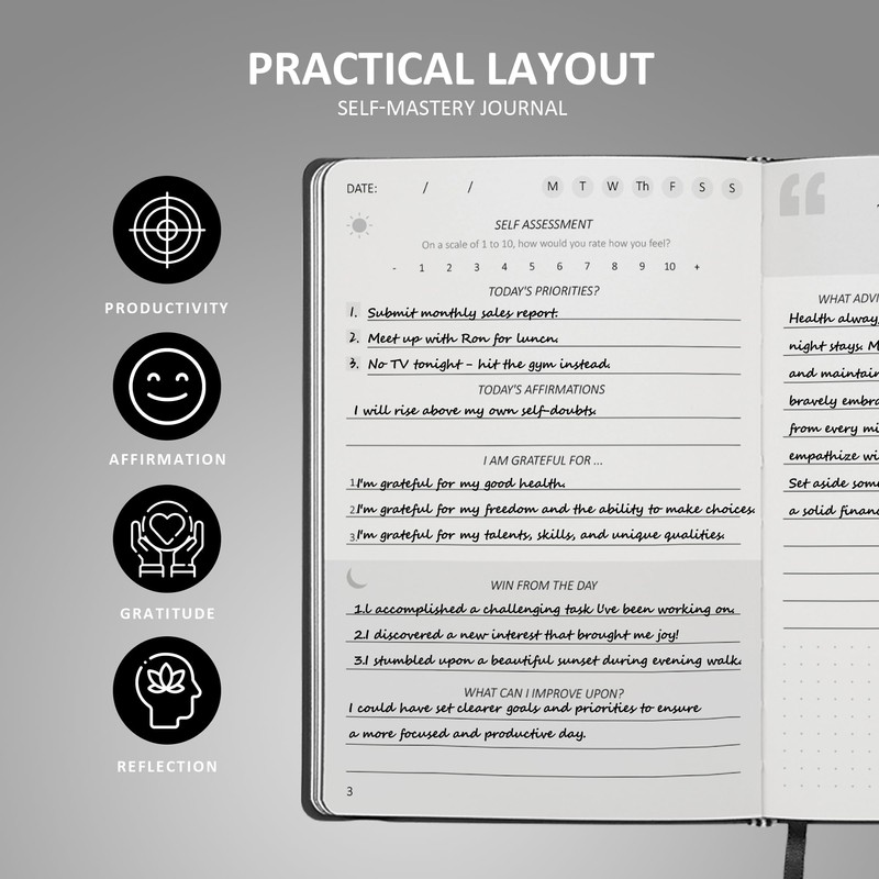 - 🎁 POSITIVITY OF PROGRESS: Easily track and celebrate your personal progress with the positivity journal. This user-friendly daily planner is a steadfast ally, keeping you focused and positive on your path of self-discovery and improvement.