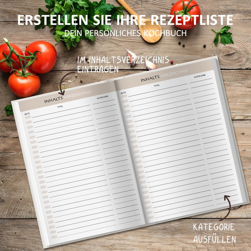 - Clear – with the table of contents you can always find your recipes quickly and easily and with the bookmarks you can mark your favourite dishes. Record your best cooking recipes and baking ideas in your personal cookbook so you can never forget them and cook them over and over again. Add categories like snacks or breakfast to your recipes to always find the right category.