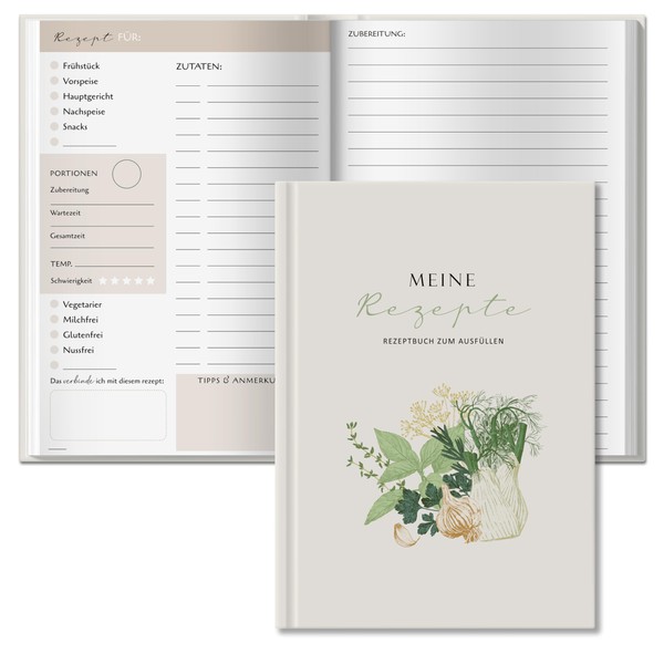 BIROYAL Recipe Book for Writing Yourself A5 - Cookbook Write Yourself, 224 Pages, DIY 100 Favourite Recipes, Baking Book, My Recipes, Hardcover (Spice Herbs)