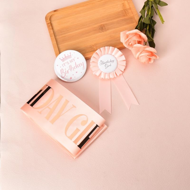 - Pink Birthday Sash and Pin Button 3 Pz Set: Elevate the birthday celebrations with our complete set of birthday accessories, featuring a stunning birthday sash, elegant birthdy corsage pin, and eye-catching birthday tinplate brooch, a stylish birthday accessory set for girls birthday party decoration, birthday celebration decorations for girls
