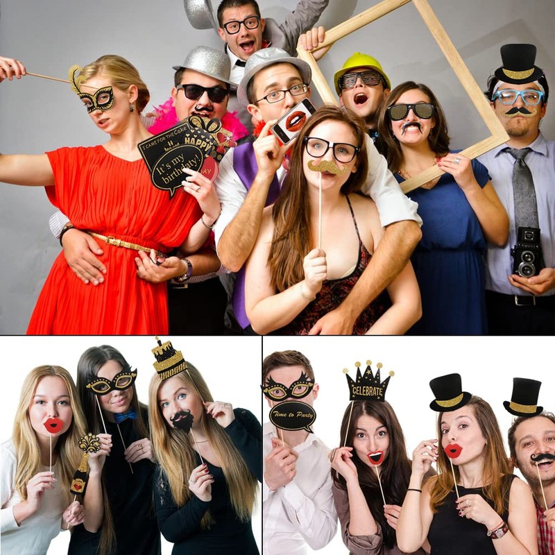 - Black Gold Photo Booth Props - Black Gold theme photo shoot props, Fashion and special, add more fun to the party.