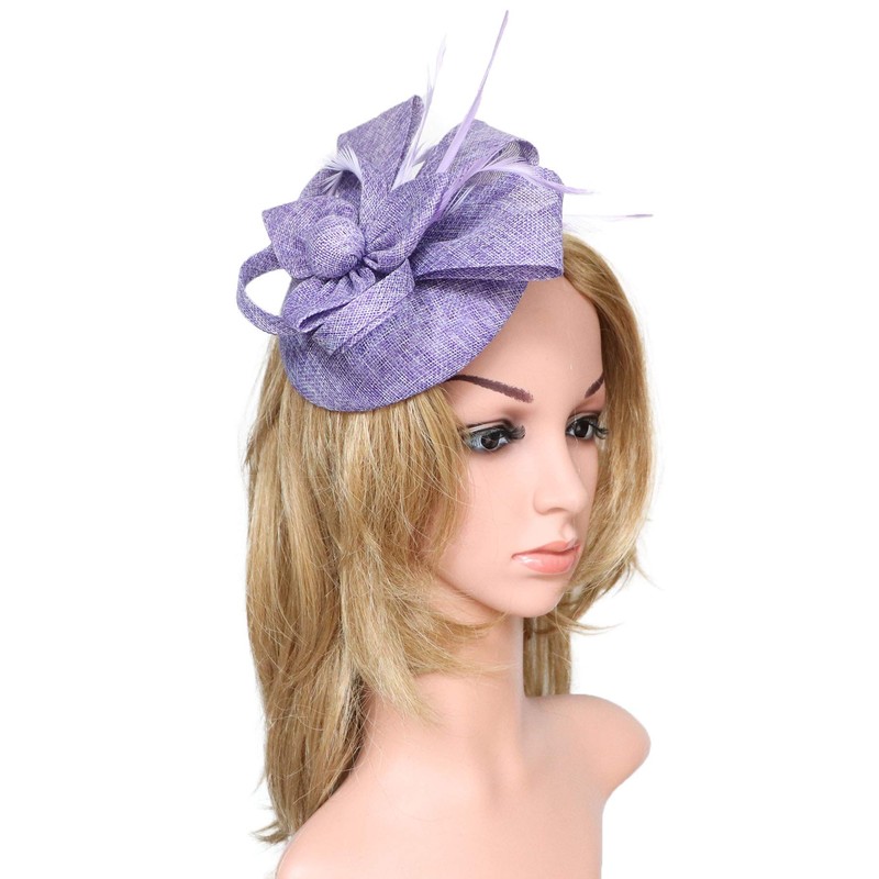 Biruil Fascinators Hat for Women Girls Sinamay Flower Feathers Tea Party Cocktail Headband Hair Clip (B Purple)