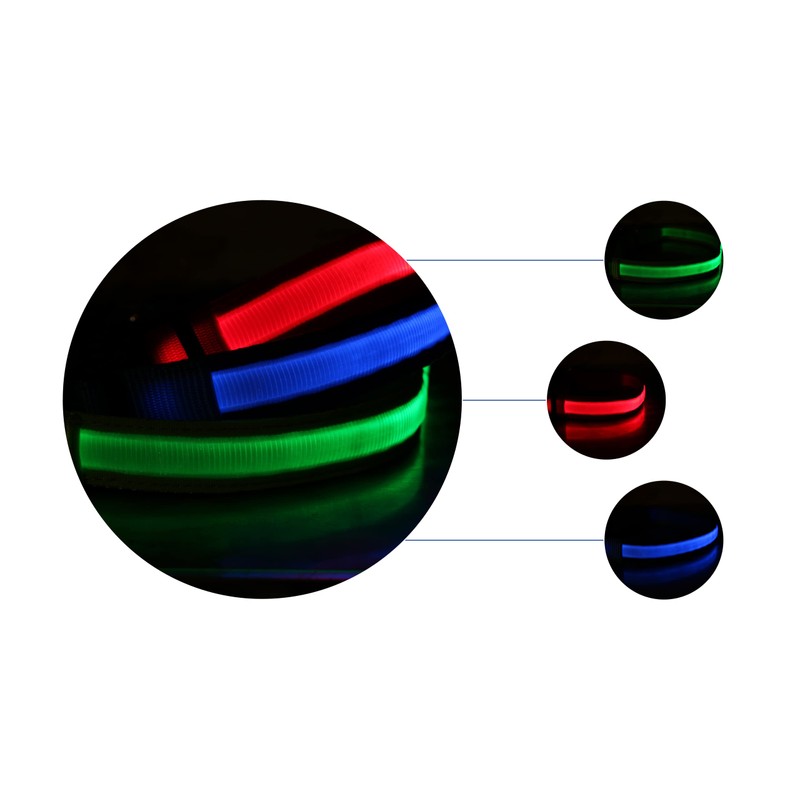 - Features: (including necklace, USB cable, instructions, battery) dog collar with very strong clip closure, all sizes are the same width of 2.5cm, high quality metal buckle for attaching the lead. The battery is in a small, sturdy and waterproof case between the fabric of the necklace. The light strip is 80% around the collar and has a width of 1.5 cm (regardless of sizes).