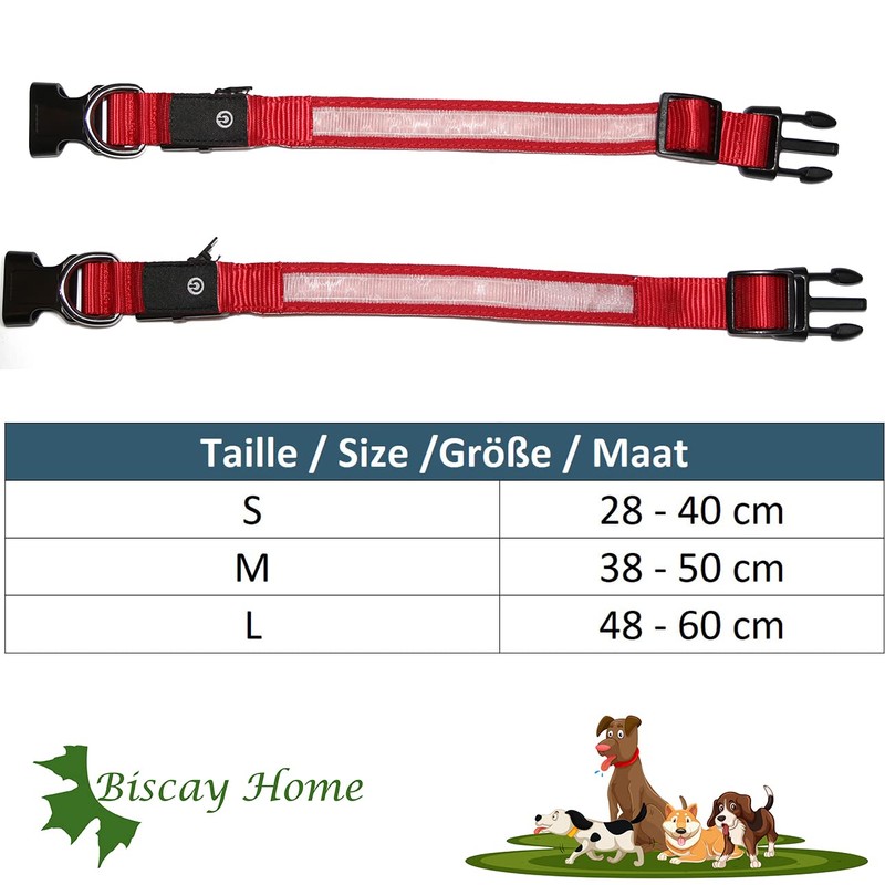 Biscay Home Light Up Rechargeable USB Waterproof Flashing Adjustable Safety Dog Collar (M (38-50cm) Red)