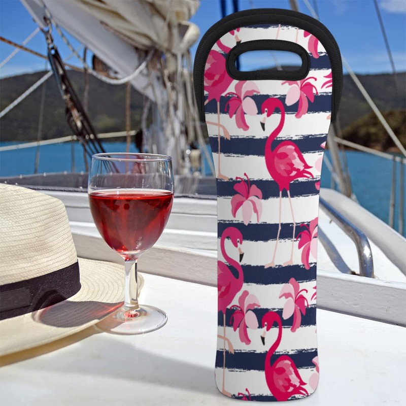 bisibuy Flamingo Stripe Single Bottle Neoprene Wine Tote Carrier Cooler
