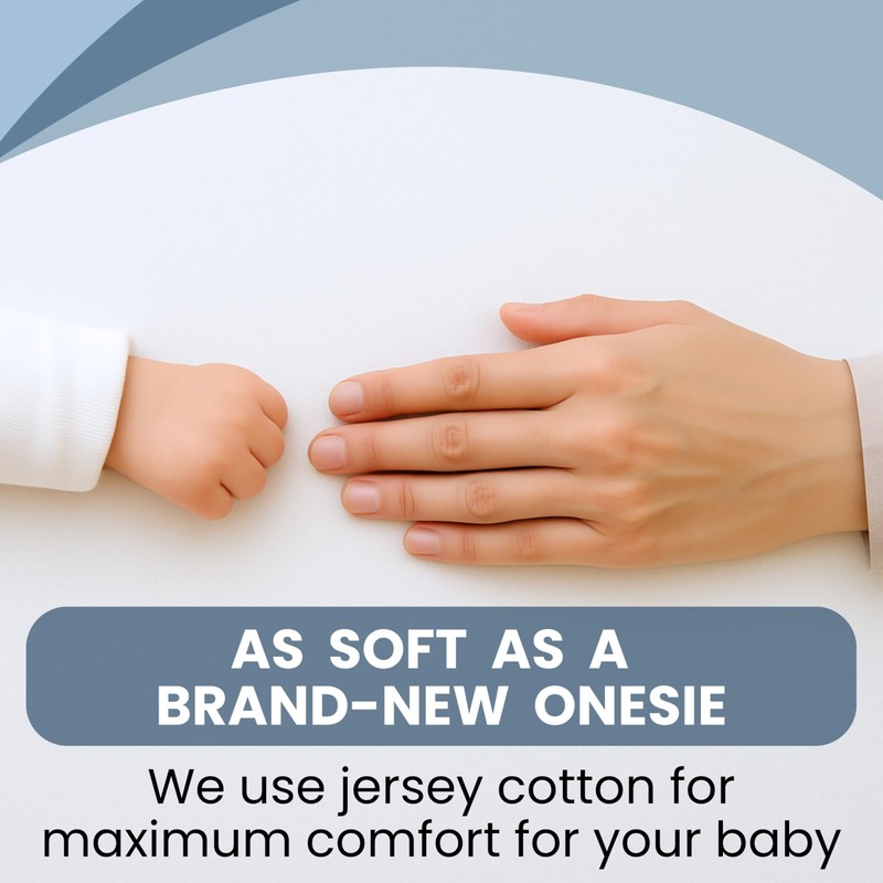 - 🌿 100% JERSEY. The top layer and sides of the sheets are made of 100% jersey cotton, offering a soft and cozy touch for the baby's delicate skin, ensuring peaceful and comfortable sleep. Moreover, thanks to their strength and durability, these sheets last over time while maintaining their quality.