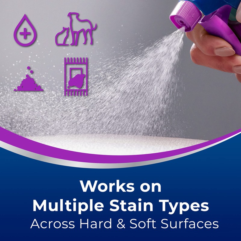 - Removes Tough Stains. Works on old and new stains, from urine, feces, vomit, tracked-in dirt, and blood.