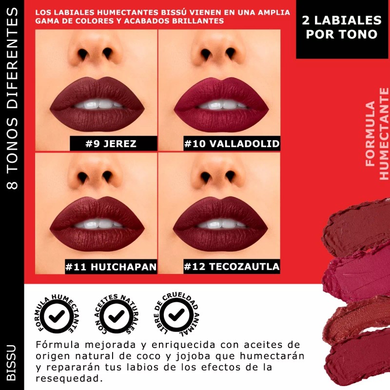 Bissu Labiales Humectantes Pueblos Mágicos tonos rojos 16 Labiales (2 labiales por tono)